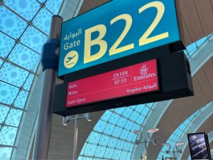 ドバイ>>>マルタの搭乗券は、日本の空港ですでに受け取っているので、ドバイに着いてまずすることは、搭乗ゲートの確認!