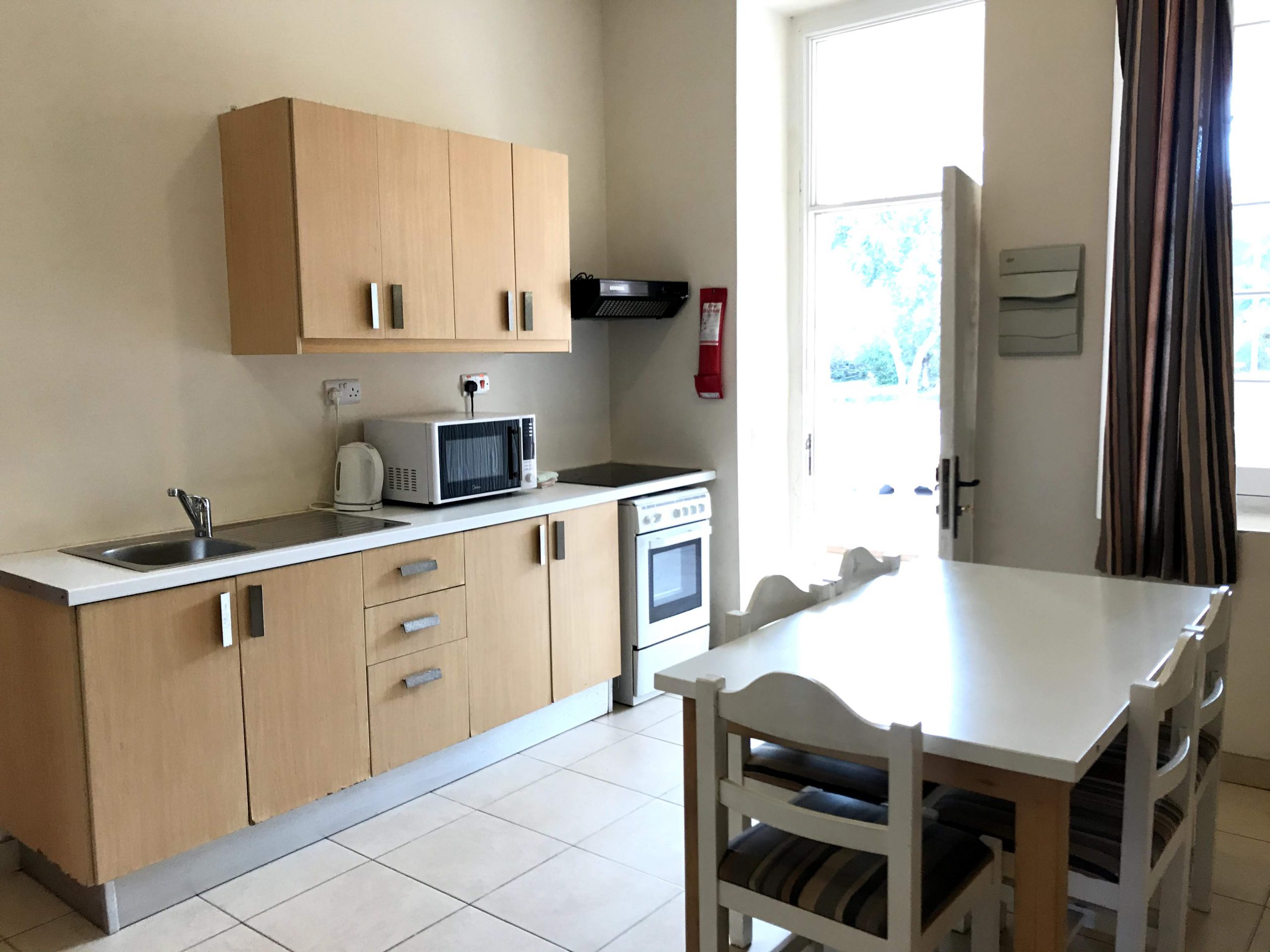 ・キッチン設備は電子レンジが無いだけで、他湯沸かしポットやフライパン、カトラリーや食器は一通り揃っている。(洗剤とスポンジはないので自分で用意する)