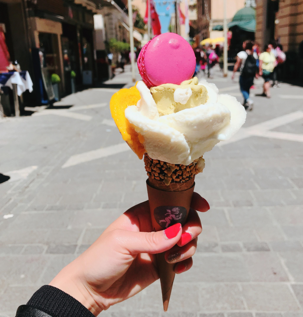 コーンのサイズを選んだら、フレーバーは好きなだけ選べます!甘いもの好きにはたまらないですね?インスタ映えも間違いなし!お店はVallettaにあります。