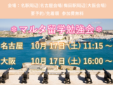 こんにちは、S.H.C. マルタ留学ドットコムの飯田です。 *マルタ留学勉強会 名古屋会場・大阪会場開催決定!* この頃は名古屋方面や関西方面にお住いの方からマルタ留学に関するお問合せが多く届いています! 「直接話を聞き>>続きを読む