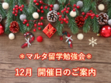 こんにちは、S.H.C. マルタ留学ドットコムの飯田です。 11月のマルタ留学勉強会も多くの方からご参加いただきました! 参加された皆様、ありがとうございました! 12月のマルタ留学勉強会の開催日が決定しましたのでお知ら>>続きを読む