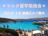 こんにちは、S.H.C. マルタ留学ドットコムの飯田です。 緊急事態宣言が延長されたため、今月もオンラインでのマルタ留学勉強会を開催します。 *2月マルタ留学勉強会 開催日のご案内* ●●●詳細●●● ◆ 2月 4日(土>>続きを読む